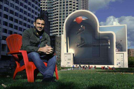 Seen by thousands of eyes a day at one of Boston's busiest intersections, the giant outdoor mural by Iranian artist Mehdi Ghadyanloo is a stunning expression of optimism he hopes can lead to better understanding between his homeland and the United States.