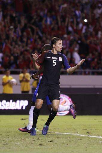United States' Matt Besler reacts as Costa Rica's Joel Campbell, back, celebrates after scoring his 4nd goal during a 2018 World Cup qualifying soccer match in San Jose, Costa Rica, Tuesday, Nov. 15, 2016. (AP Photo/Moises Castillo) The Associated Press