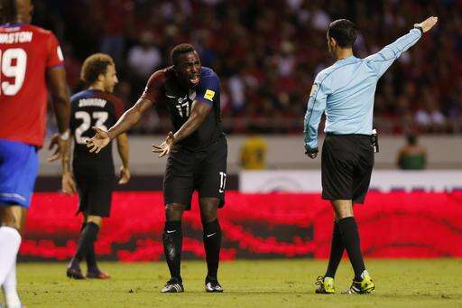 United States' Jozy Altidore, center, protests to referee Cesar Ramos, of Mexico, during a 2018 World Cup qualifying soccer match against Costa Rica, in San Jose, Costa Rica, Tuesday, Nov. 15, 2016. (AP Photo/Moises Castillo) The Associated Press