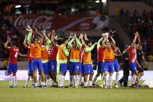 Costa Rica's players celebrate at the end of a 2018 World Cup qualifying soccer match against United States in San Jose, Costa Rica, Tuesday, Nov. 15, 2016. Costa Rica won the match 4-0. (AP Photo/Moises Castillo) The Associated Press