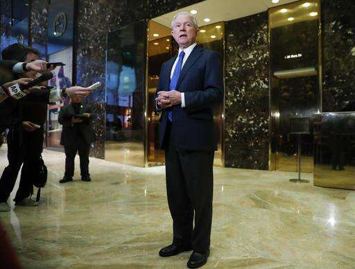 In this photo taken Nov. 17, 2016, Sen. Jeff Sessions, R-Ala. speaks to media at Trump Tower in New York. President-elect Donald Trump has picked Sessions for the job of attorney general. (AP Photo/Carolyn Kaster) The Associated Press