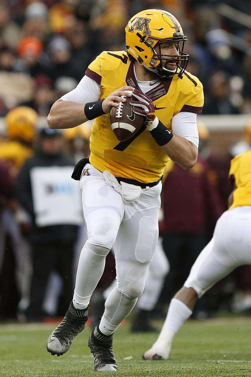 Minnesota quarterback Mitch Leidner looks to pass the ball against Northwestern during an NCAA college football game Saturday, Nov. 19, 2016, in Minneapolis. (AP Photo/Stacy Bengs)