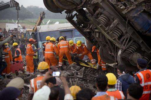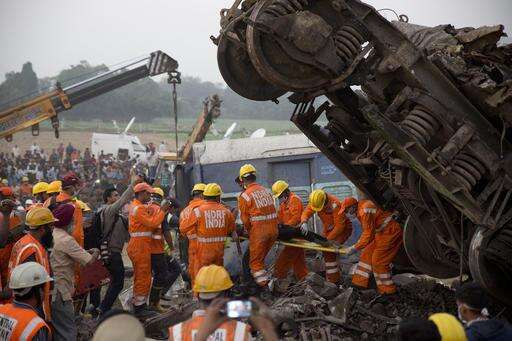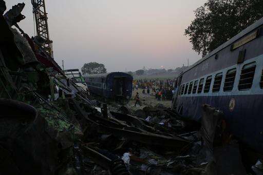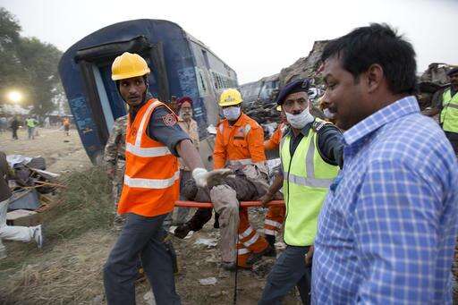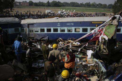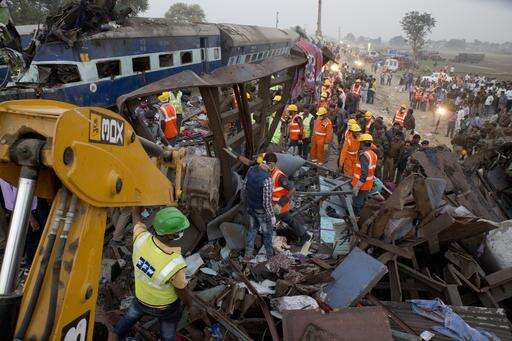 PUKHRAYAN, India (AP) - Rescuers worked through the night to pull people out of mangled coaches after an overnight passenger train derailed early Sunday in northern India, killing at least 115 people, police said.