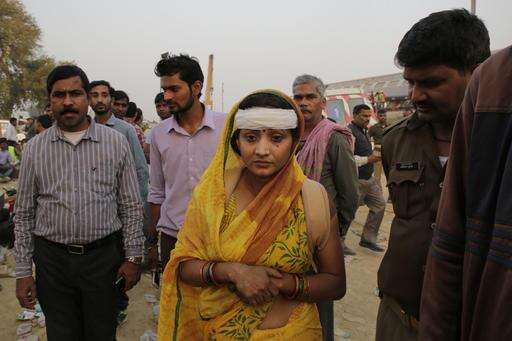 An injured passenger walks after 14 coaches of an overnight passenger train rolled off the track near Pukhrayan village Kanpur Dehat district, Uttar Pradesh state, India, Sunday, Nov. 20, 2016. Dozens were killed and dozens more were injured in the accident. (AP Photo/Rajesh Kumar Singh) The Associated Press