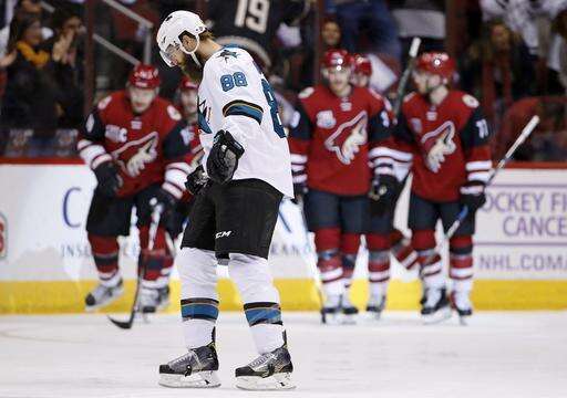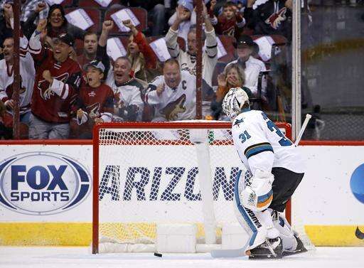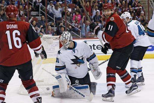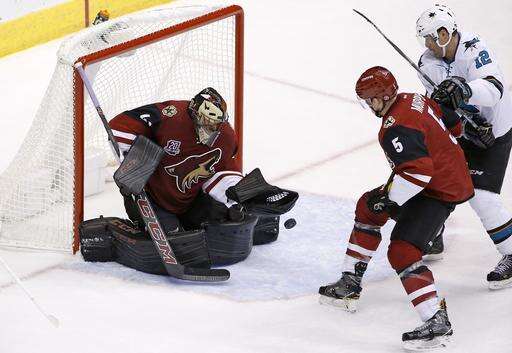 The Coyotes mustered just four shots against goalie Martin Jones in the opening period and scored on one of them. Jones made 23 saves.
