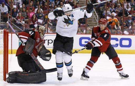 Smith makes 43 saves, Coyotes nip Sharks 3-2 in OT