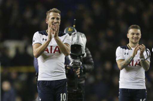 Tottenham's Harry Kane, left, applauds at the end of the English Premier League soccer match between Tottenham Hotspur and West Ham United at White Hart Lane in London, Saturday Nov. 19, 2016. (AP Photo/Tim Ireland) The Associated Press