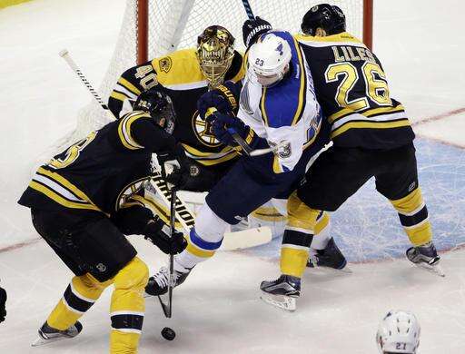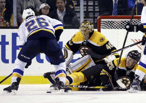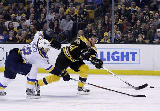 NOTES: Krug's assist on the opening goal was the 100th in his career. ... LW Alexander Steen did not travel with the Blues and missed his third straight game with an upper-body injury. ... RW David Pastrnak, who leads Boston with 10 goals, missed his third consecutive game with an undisclosed injury.