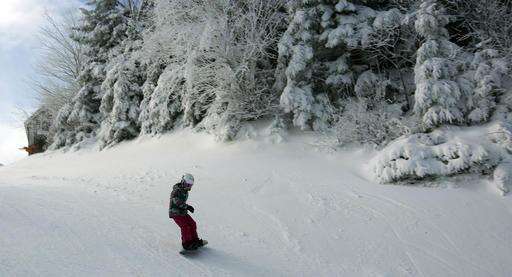 FILE - In this Jan. 15, 2016, file photo, a snowboarder makes his way down the mountain at Attitash ski area in Bartlett, N.H. Skiing is an expensive sport but there are ways to save money thanks to discount ticket websites, Learn to Ski and Snowboard Month and Bring A Friend programs. (AP Photo/Jim Cole, File) The Associated Press