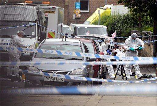 FILE - This is a June 16, 2016 file photo of forensics officers work at the scene in Birstall, northern England, following the death of British lawmaker Jo Cox, who died after being shot and stabbed in the street. A jury Wednesday Nov. 23, 2016 found Thomas Mair a man with white supremacist views guilty of murdering Jo Cox a week before Britain's EU membership referendum. (Nigel Roddis/PA via AP) The Associated Press