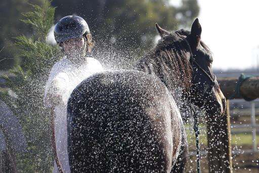 In this Nov. 2, 2016, photo, inmate Dax PopLawski washes Sonora after a workout at the Wild Horse Program run at the Sacramento County Sheriff's Department's Rio Cosumnes Correctional Center in Elk Grove, Calif. Inmates spend 40 hours a week training mustangs provided by the federal Bureau of Land Management. (AP Photo/Rich Pedroncelli) The Associated Press