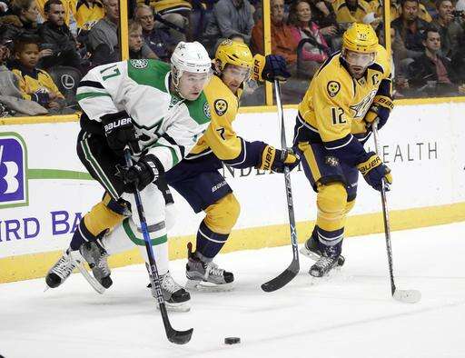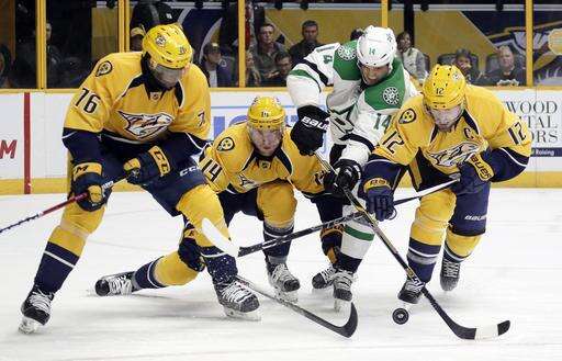 NOTES: Nashville D Ryan Ellis played in his 300th career NHL game. ... The Predators have allowed four short-handed goals against this season. ... The Stars are 0-8-1 when trailing after two periods this season. ... Dallas D John Klingberg returned to the lineup after being a healthy scratch Monday against Minnesota.