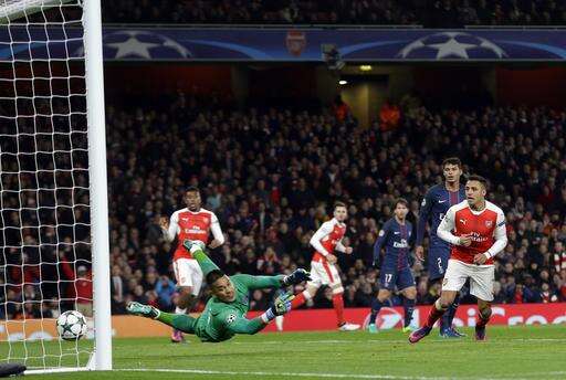 PSG goalkeeper Alphonse Areola fails to stop an own goal by PSG's Marco Verratti, not pictured, during the Champions League group A soccer match between Arsenal and Paris Saint Germain at the Emirates stadium in London, Wednesday, Nov. 23, 2016. (AP Photo/Alastair Grant) The Associated Press