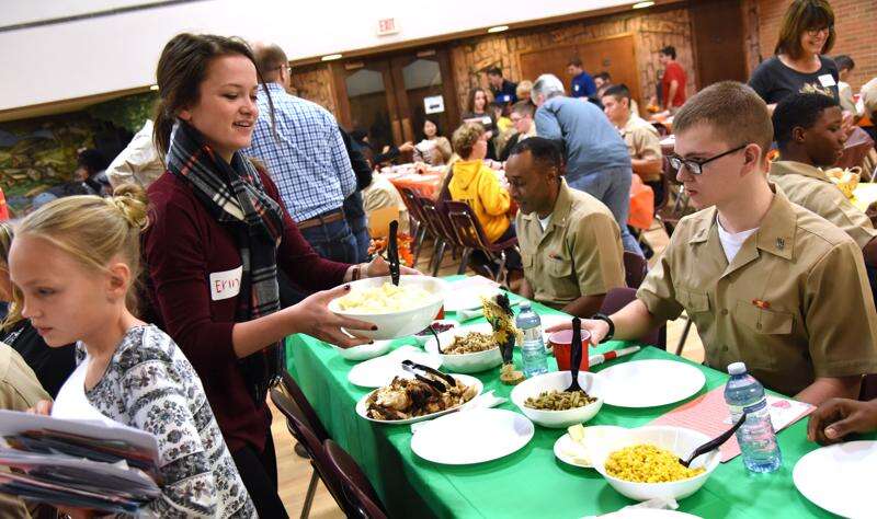 About 75 Great Lakes Naval Station recruits enjoyed Thanksgiving dinner with all the trimmings and hospitality from volunteers Thursday at Gurnee Community Church. Meanwhile, in Palatine, American Legion Post 690 hosted a busload of sailors from the naval station.