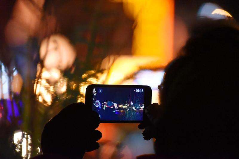 A woman records the event on her cellphone Saturday at the St. Charles Electric Light parade on Main Street.