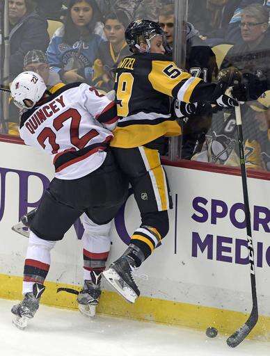 NOTES: The Penguins gave Devils D Ben Lovejoy and F Beau Bennett their Stanley Cup rings before the game. The two helped the franchise to its fourth championship last spring. Lovejoy signed as a free agent in the offseason while New Jersey acquired Bennett in a draft-day trade. ... Pittsburgh went 0 for 5 on the power play. The Devils were 1 for 2.