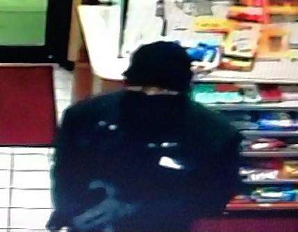 The robber was described as a dark-skinned man with a thin build and standing approximately 5'4". He was wearing a black North Face jacket, black hat, black ski mask, blue jeans, and black gloves.