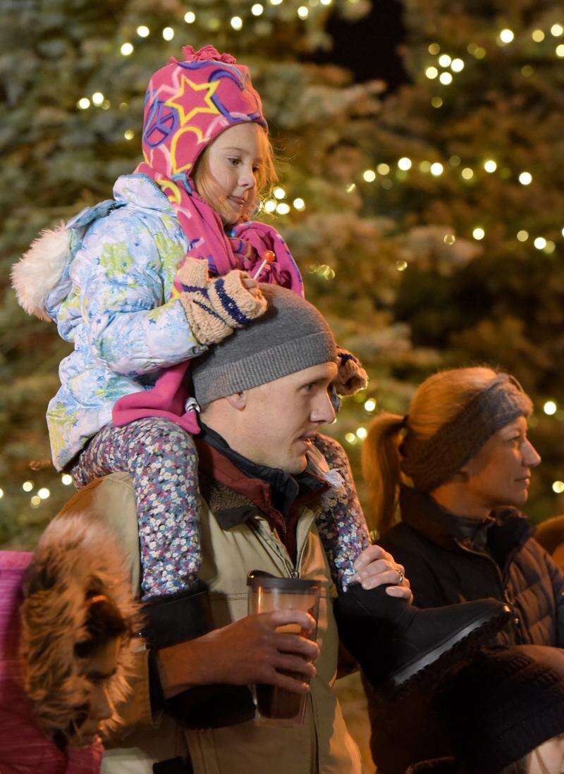 Makayla Dana, 5, sits on her dad Jon's shoulders to get a better view of the annual Little Friends Holiday Parade of Lights in Naperville. Mark Black/mblack@dailyherald.com