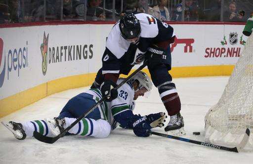 NOTES: Vancouver D Alexander Edler left after he blocked a shot by Soderberg in the first period. He will have X-rays when the team returns home, Desjardins said. ... The Avalanche got a scare of their own when MacKinnon lost an edge and slammed into the boards early in the second. He winced in pain for a few minutes but quickly returned to the ice. ... Bednar said he hoped Varlamov (upper-body injury) would be able to return to practice Sunday. ... The Avalanche recalled G Spencer Martin from the San Antonio Rampage to serve as Pickard's backup. Martin was Colorado's third-round draft choice in 2013. ... The Canucks assigned Alex Biega to the Utica Comets for a conditioning stint. ... Avalanche captain Gabriel Landeskog missed his fifth straight game with a lower-body injury. ... Vancouver winger Sven Baertschi missed his second straight game with a foot injury and is considered day to day.