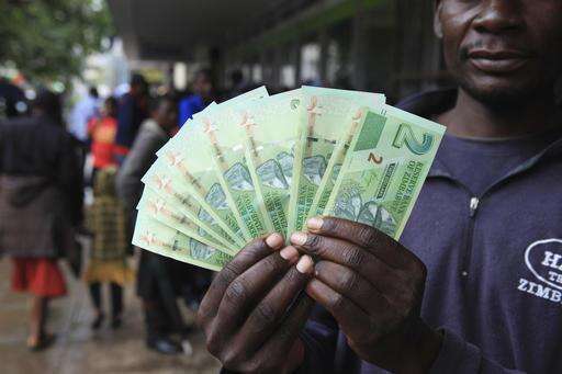 A man shows the new notes introduced by the Reserve Bank of Zimbabwe in Harare, Monday, Nov, 28, 2016. Zimbabwe has rolled out a new currency for the first time since 2009 in hopes of easing biting shortages of the US dollar. Banks across the country started issuing the new currency called bond notes, Monday. (AP Photo/Tsvangirayi Mukwazhi) The Associated Press