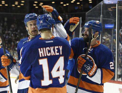 Hickey's OT goal helps Isles stay strong at home vs Flames