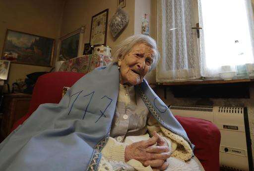 Emma Morano, 117 years hold, sits in her home in the day of her birthday in Verbania, Italy, Tuesday, Nov. 29, 2016. At 117 years of age, Emma is now the oldest person in the world and is believed to be the last surviving person in the world who was born in the 1800s, coming into the world on Nov. 29, 1899. (AP Photo/Antonio Calanni)