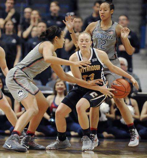 UConn (5-0) led by just 12 points at halftime, before holding Chattanooga scoreless for more than 8 minutes during an 18-0 third quarter run. That gave the Huskies a 61-33 lead and put the game out of reach. The Mocs had just 12 points after intermission.