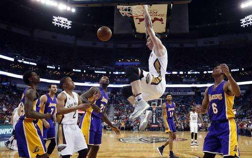New Orleans Pelicans center Omer Asik (3) slam dunks in the first half of an NBA basketball game against the Los Angeles Lakers in New Orleans, Tuesday, Nov. 29, 2016. (AP Photo/Gerald Herbert) The Associated Press