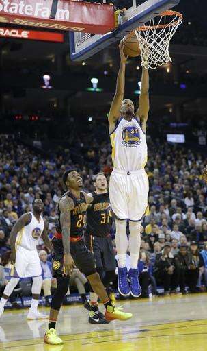 Kevin Durant leads Warriors past scrappy Hawks, 105-100
