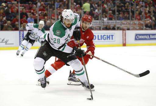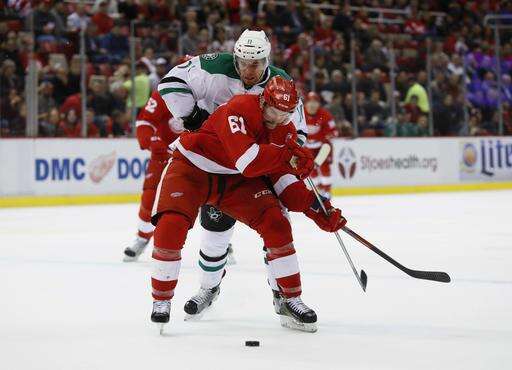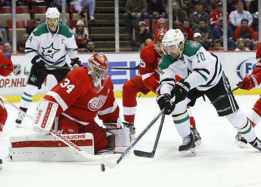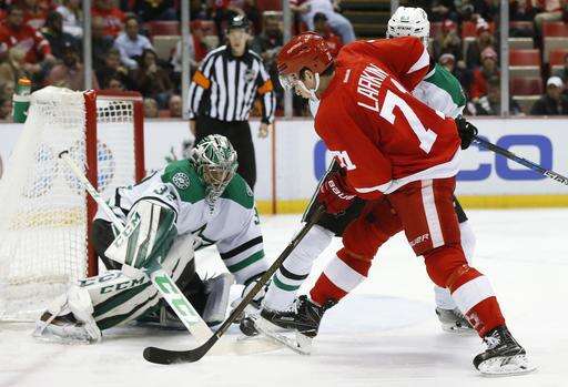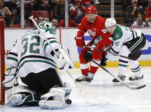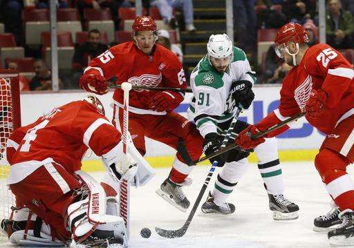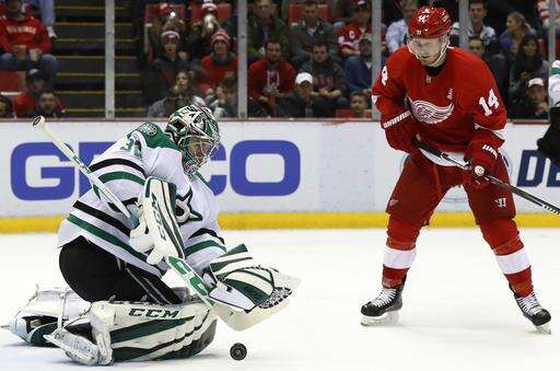 NOTES: Dave Strader, the Stars' TV play-by-play announcer, who was diagnosed with cancer earlier this year, attended the game and announced the team's lineup in the locker room beforehand. ... Dallas made its final scheduled appearance at Joe Louis Arena, which will be replaced by a new arena next season. ... Hall of Famer Ted Lindsay dropped the ceremonial puck before the game. ... Detroit's Tomas Jurco made his season debut, returning from offseason back surgery. ... Dallas D Stephen Johns, called up Sunday, went off late in the game with a towel over his face to try to stop bleeding.