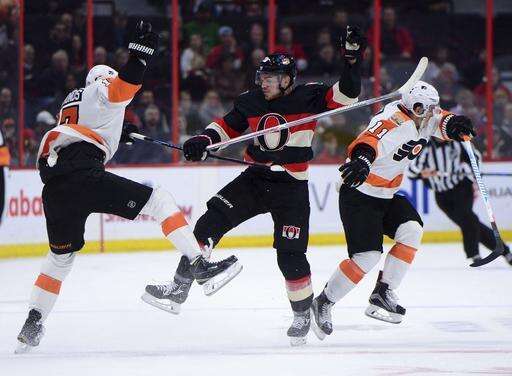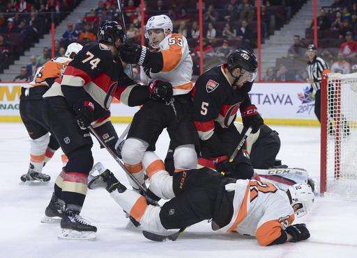 NOTES: The Grey Cup champion Ottawa Redblacks were on hand for a ceremonial faceoff. Quarterback Henry Burris and receiver Brad Sinopoli dropped the puck from the Grey Cup. ... Ottawa was down to five defenseman for the third period after Fredrik Claesson suffered a lower-body injury. ... Philadelphia D Brandon Manning missed his third straight with an upper-body injury. LW Scott Laughton and D Nick Schultz were healthy scratches.