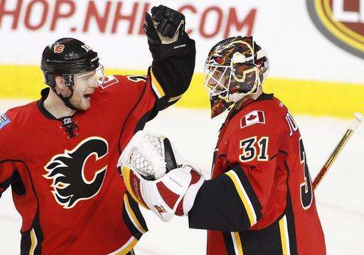 "Six (games) in nine nights and coming back home from New York, we were a tired club. I loved our start," Flames coach Glen Gulutzan said. "And then when you get a goaltending performance that Johnny gives us, it gives you a chance."