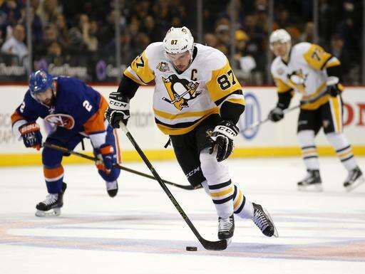 Pittsburgh Penguins center Sidney Crosby (87) skates down ice with the puck, leaving New York Islanders defenseman Nick Leddy (2) behind during the first period of an NHL hockey game, Wednesday, Nov. 30, 2016, in New York. (AP Photo/Kathy Willens) The Associated Press