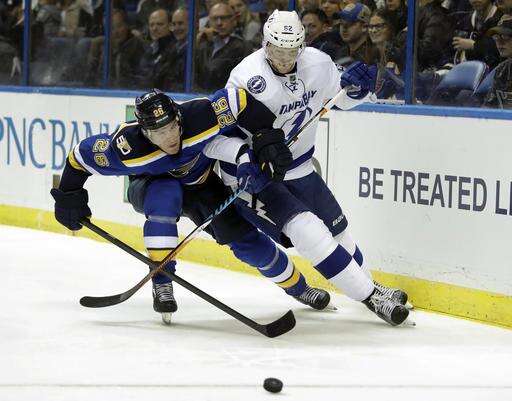 NOTES: The Lightning recalled RW Joel Vermin and LW Michael Bournival from Syracuse of the AHL. ... St. Louis leads the overall series with Tampa Bay 21-11-3. ... Tampa Bay D Anton Stralman returned to the lineup after missing nine games due to an upper body injury. ... Blues LW David Perron had a career-best eight-game point streak snapped. ... Bishop did not start in back-to-back games for the first time this season. ... St. Louis C Paul Stastny played in his 700th NHL game.