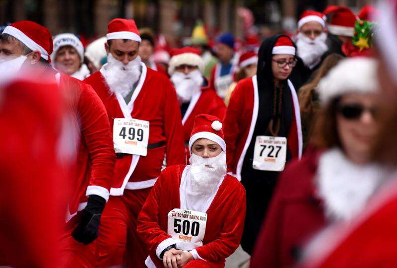"Remember, there's a one-minute time penalty if you don't wear your beard through the whole race," Mayor Thomas Hayes cautioned the assembled Santas in the lead-up to the 10 a.m. start near the Metropolis Performing Arts Centre on Campbell Street and Highland Avenue.
