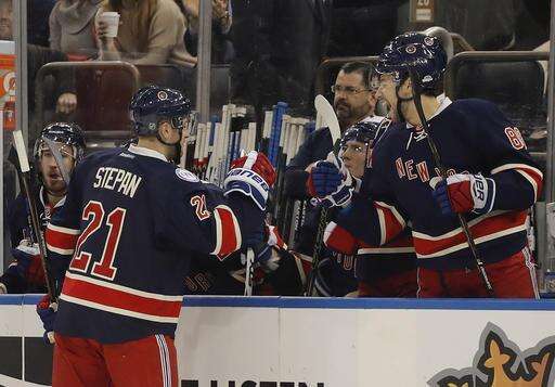 Derek Stepan had a goal and two assists and Michael Grabner also scored, and Mats Zuccarello had two assists for the Rangers. Henrik Lundqvist stopped 21 shots to bounce back from a shaky outing at Buffalo two nights earlier and pick up his 11th win of the season.