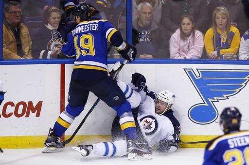 NOTES: Steen also got his 150th goal with St. Louis. ... C Kyle Brodziak played his 100th game with the Blues. ... St. Louis D Robert Bortuzzo left with a lower-body injury early in the second period and did not return. ... Winnipeg C Mark Scheifele was scratched with a lower-body injury. ... Winnipeg snapped a streak of four straight games allowing at least one power-play goal to St. Louis