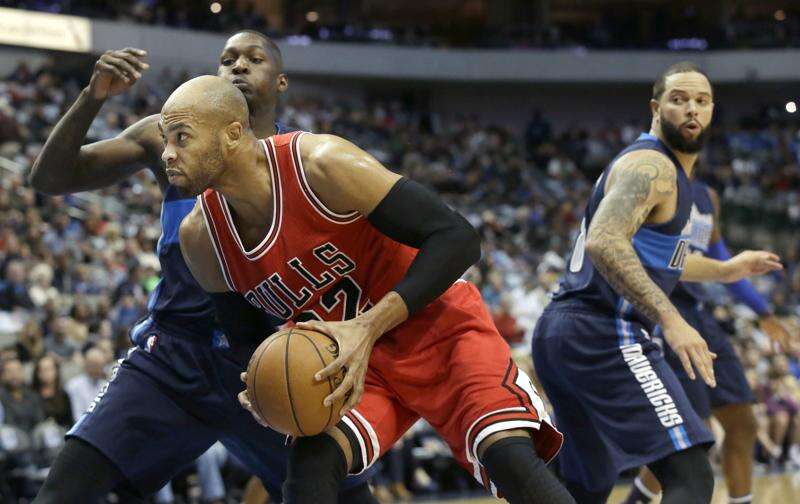 Bulls forward Taj Gibson drives against Dallas Mavericks forward Dorian Finney-Smith during the first half of Saturday's loss in Dallas. Associated Press
