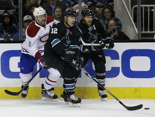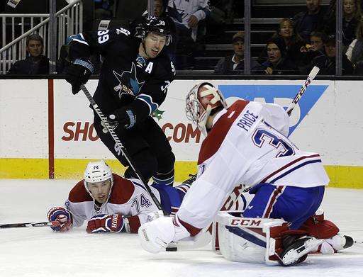 NOTES: Thornton has 1,356 points, 25th on the NHL's career list. ... Burns has eight points in his past seven games. ... The Canadiens are 0-7-2 in California since March 2014. ... The Canadiens have allowed 12 power-play goals in 38 chances to San Jose since 1999. ... Montreal's past seven games have been decided by one goal.