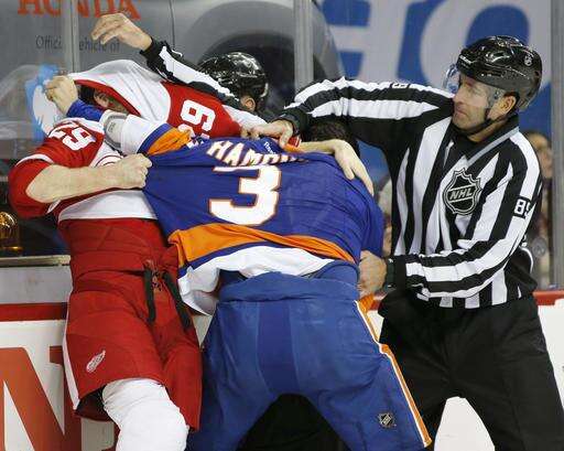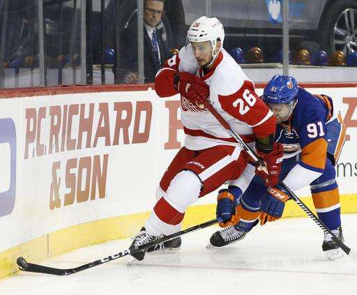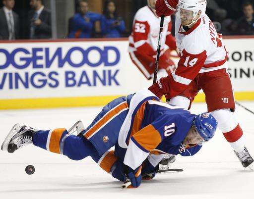 Detroit's Frans Nielsen had an assist while facing his former team for the first time since leaving the Islanders for a six-year, $31.5 million deal with the Red Wings last summer. The 32-year-old Danish center, selected by the Islanders in the third round of the 2002 draft, had 119 goals and 230 assists over 10 seasons in New York.