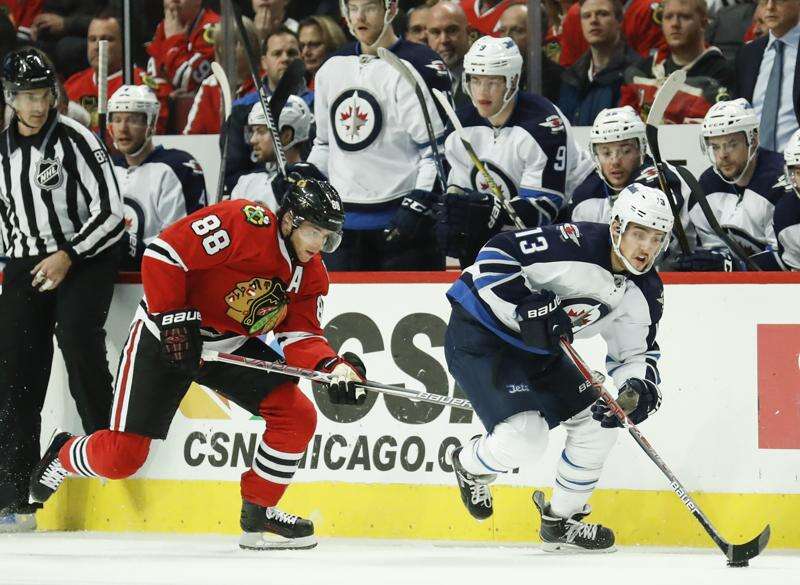 With Toews still out, Hawks fall to Jets 2-1