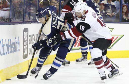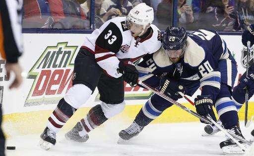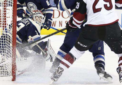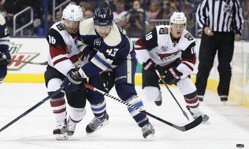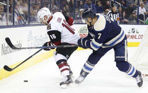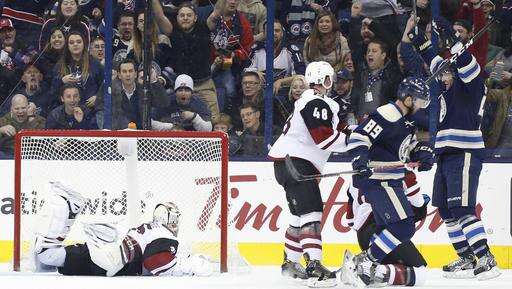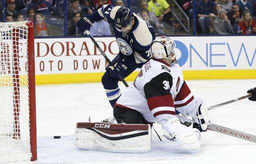 NOTES: Columbus entered the game as the NHL's best on the power play and were 2 for 6 Monday. ... Columbus' Brandon Saad got his 200th career point with an assist. ... Markus Hannikainen, who played well on the Blue Jackets' fourth line while Matt Calvert was sidelined with an injury, was sent to Cleveland (AHL) on Sunday after Calvert returned. ... Twenty-year-old W Brendan Perlini made his NHL debut for Arizona after being recalled from Tucson (AHL) on Sunday. ... Dalton Prout and Scott Harrington were scratches for the Blue Jackets, and Anthony Duclair and Kevin Connauton were scratched for Arizona. ... The Blue Jackets have won the last seven out of eight at home. ... Cam Atkinson has 14 points in his past 10 games for the Blue Jackets.
