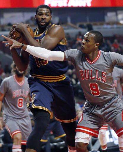 Cleveland Cavaliers forward Tristan Thompson pulls in a rebound next to Chicago Bulls guard Rajon Rondo during the first half of an NBA basketball game Friday, Dec. 2, 2016, in Chicago. (AP Photo/Nam Y. Huh) The Associated Press