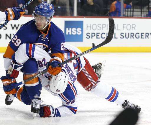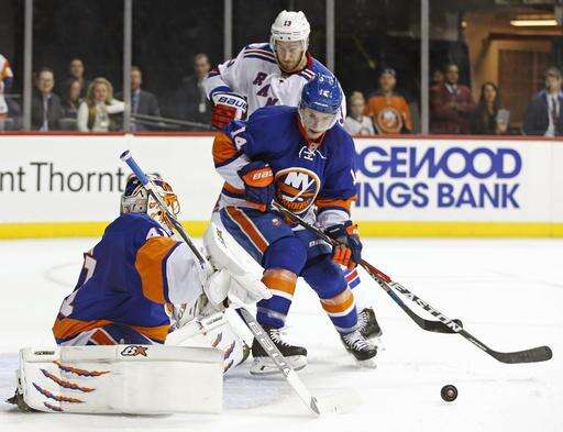 NOTES: The Rangers were without F Michael Grabner, the team-leader with 13 goals, while the former Islander was back in Austria for his grandmother's funeral. ... The Islanders improved to 8-1-2 when scoring at least three goals, 7-0-1 when leading after two periods, and 7-1-3 when scoring first. ... D Mayfield was called up from Bridgeport of the AHL to take the place of Johnny Boychuk, who was scratched due to flu-like symptoms. ... The Islanders had their second sellout of the season, and first since the opener against Anaheim on Oct. 16.