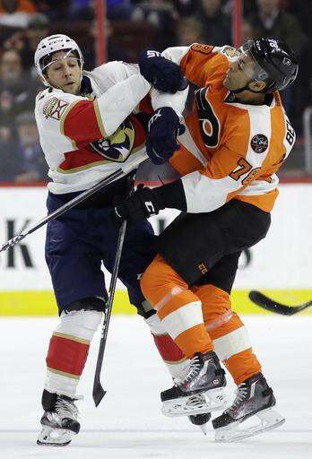 NOTES: Philadelphia improved to 6-3 in overtime while Florida dropped to 7-4. ... The Panthers were without C Jonathan Marchessault (lower body), who leads the club in goals (10) and points (19), for the second straight game. ... The teams wrap up their three-game season series on March 2 in Philadelphia. ... Flyers D Radko Gudas (illness) missed his third straight game. ... Flyers RW Matt Read (upper body) missed the first game of what's expected to be a monthlong absence. He was replaced by Taylor Leier, who was called up from Lehigh Valley of the AHL for his first NHL game of the season and seventh of his career. ... Florida, which lost 4-3 in overtime Monday night at Boston, dropped to 2-2 on the second game of a back-to-back. ... Philadelphia's winning streak is its best since seven straight victories Dec. 2-15, 2011.