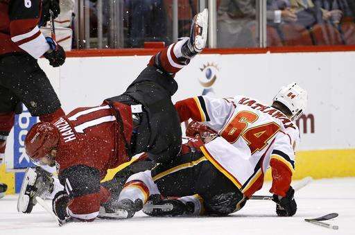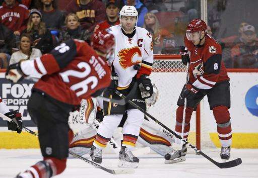 NOTES: Doan had an assist on Domi's goal to break Thomas Steen's franchise record of 553 assists. ... Calgary RW Kris Versteeg did not play after injuring his hip against Dallas on Tuesday. ... Arizona's Ryan White was called for instigating and was issued a 10-minute misconduct in the first period after Lance Bouma ran Coyotes Ekman-Larsson into the boards.