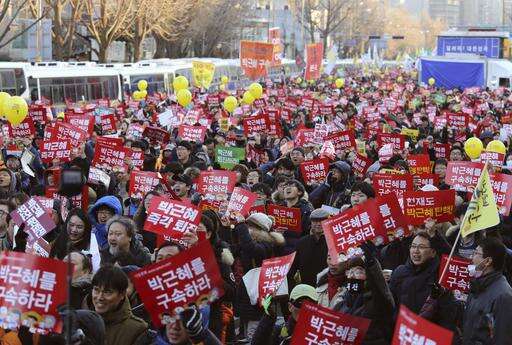 Protest organizers said about 600,000 people turned out on Saturday. On Friday, the opposition-controlled parliament passed an impeachment motion against Park, which stripped her of her presidential duties and pushed Prime Minster Hwang Kyo-ahn into the role as government caretaker until the court rules on Park's fate.