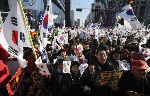 There was tension Saturday hours before the large demonstration when thousands of Park supporters, most of them in their 60s or older, rallied in nearby streets, waving the country's flags and shouting for Park's "demagoguery impeachment" to be nullified.
