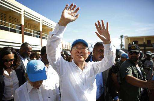 FILE - Saturday, Oct. 15, 2016, file photo, United Nations Secretary-General Ban Ki-moon waves to people whose homes were destroyed by Hurricane Matthew, as he visits a school where they have sought shelter, in Les Cayes, Haiti. With lawmakers voting to impeach her over an explosive corruption scandal, South Korean President Park Geun-hye’s days in office seem numbered. Her potential successors include the outgoing secretary general of the United Nations, an ambitious mayor compared to both Donald Trump and Bernie Sanders and the man who lost the presidential election to Park four years ago. (AP Photo/Rebecca Blackwell, File) The Associated Press
