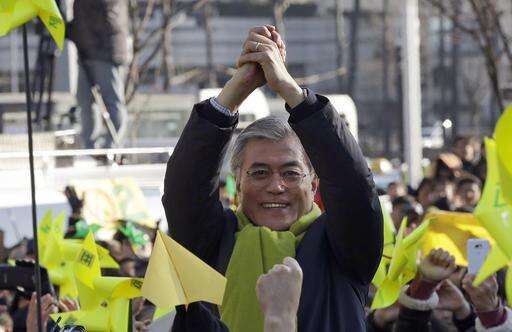 FILE - In this Tuesday, Dec. 18, 2012, file photo, the then South Korea's presidential candidate of Democratic United Party Moon Jae-in gestures to supporters while campaigning in Seoul, South Korea. South Korea's presidential election is scheduled for Dec. 19. With lawmakers voting to impeach her over an explosive corruption scandal, South Korean President Park Geun-hye’s days in office seem numbered. Her potential successors include the outgoing secretary general of the United Nations, an ambitious mayor compared to both Donald Trump and Bernie Sanders and the man who lost the presidential election to Park four years ago. (AP Photo/Lee Jin-man, File) The Associated Press